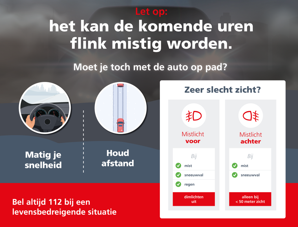 Het is dus belangrijk dat je weet wat je kunt doen ter voorbereiding op mist én als je buiten bent in zo'n situatie.