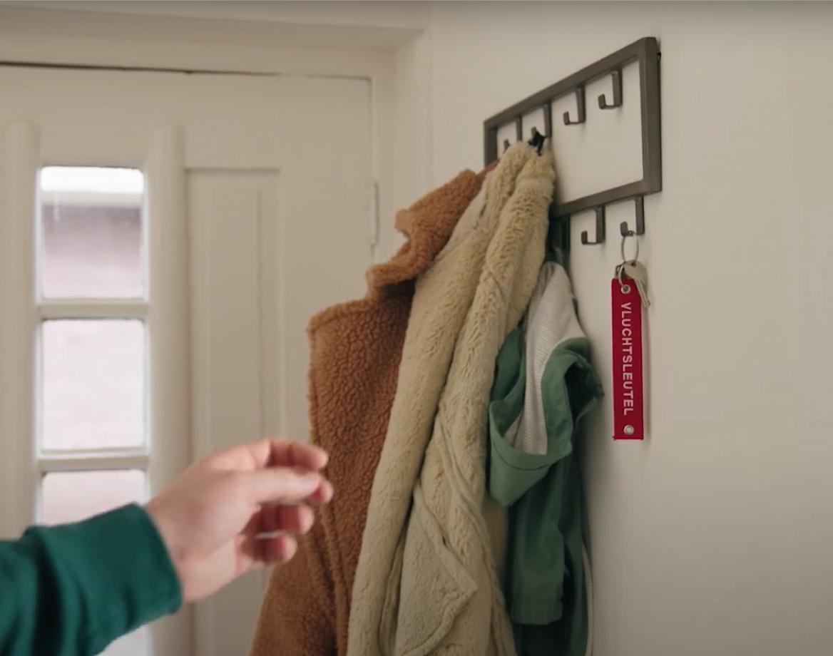 Gemiddeld zijn we 10 minuten per dag bezig met het zoeken naar spullen die we ergens hebben laten slingeren. Hieronder vallen ook onze huissleutels. Dit kost bij het vluchten bij brand te veel kostbare tijd. Hang daarom een vluchtsleutel op een vaste plek op je vluchtroute.